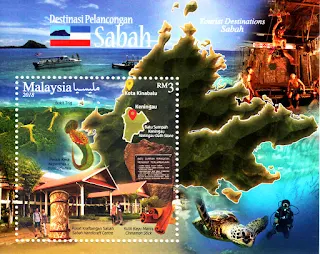 In 2018, Sabah, the furthermost state in East Malaysia, a (RM3) mini sheetlet tauted their spices, flora, museums and underwater attractions.