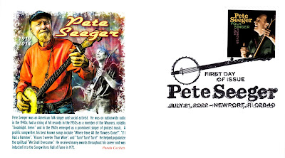 The postmark cancellation originated from New Port, Rhode Island where Seeger fostered the careers of a new generation of folk singers, including Joan Baez and Bob Dylan, partly through his early stewardship of the Newport Folk Festival.